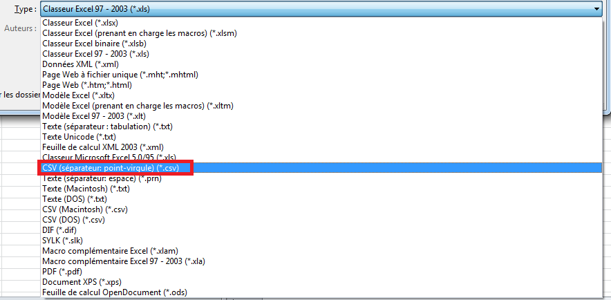 La conversion est très aisée et il suffit de sélectionner le format CSV depuis le menu « Enregistrer sous » d’Excel: