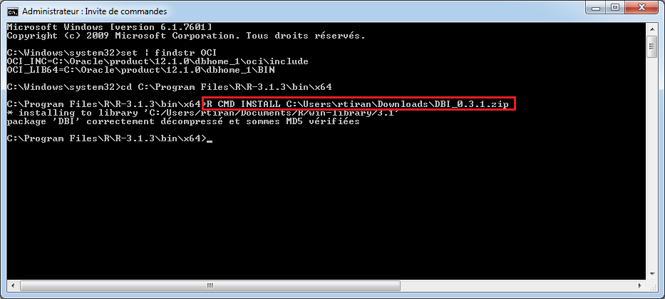 A noter que j’utilise un téléchargement et une installation manuelle des composants car ma machine n’accède pas directement à internet. Dans le cas contraire, il est tout à fait possible d’utiliser la commande install.packages depuis la console R.