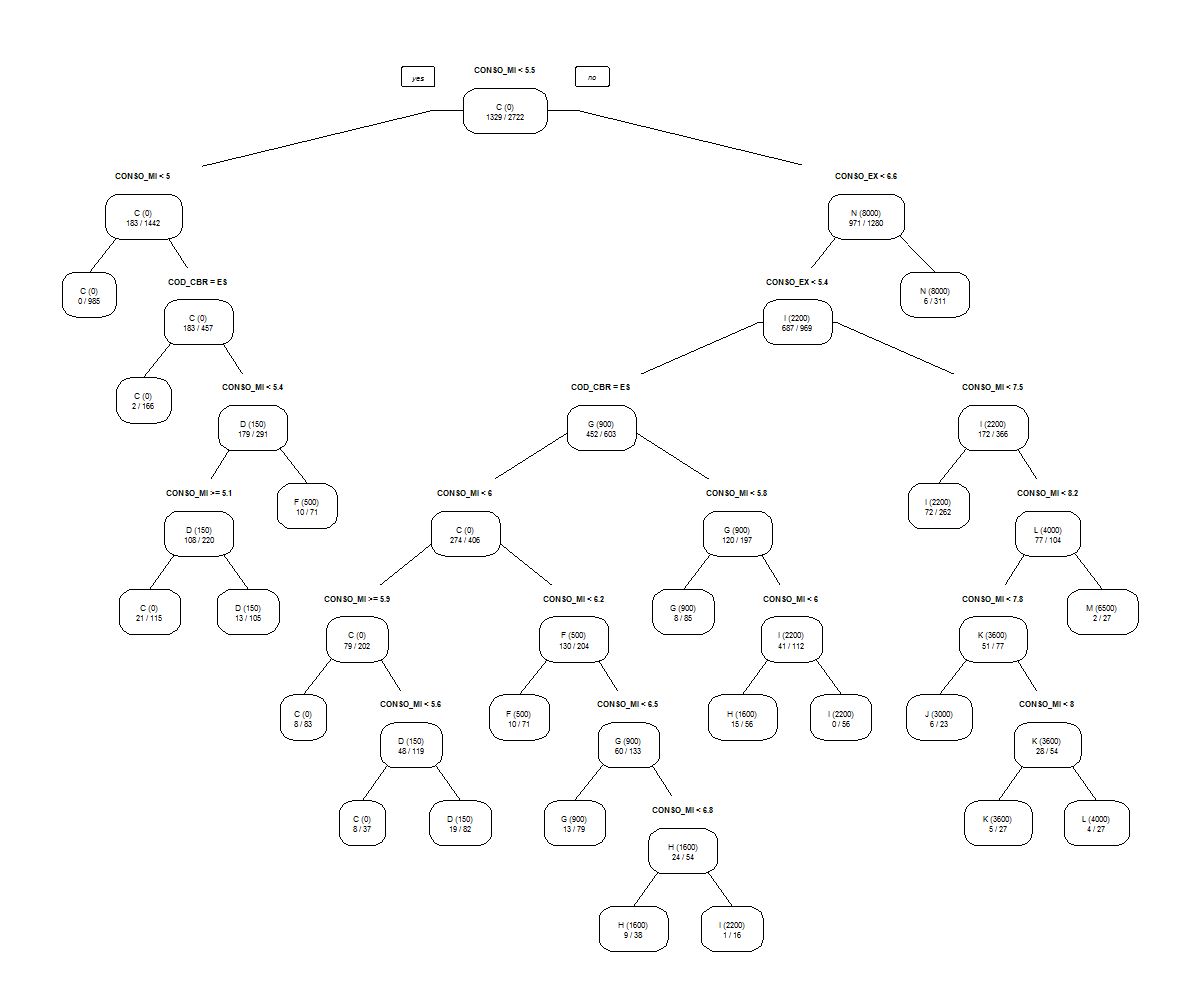 > autos_dt <- rpart(BONUS_MALUS~., data=autos_apprentissage[,!(colnames(autos_apprentissage) %in% c("LIB_MOD","LIB_MRQ"))], method="class")