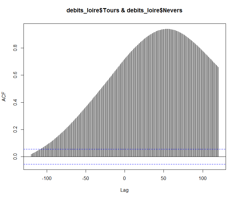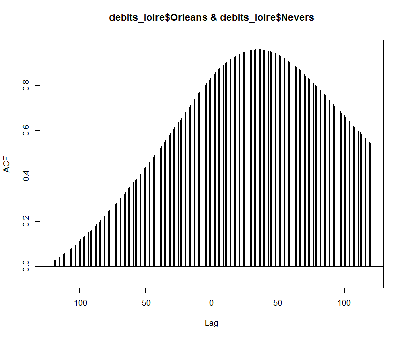 > nevers_tours <- ccf(debits_loire$Tours,debits_loire$Nevers, lag.max=120) >